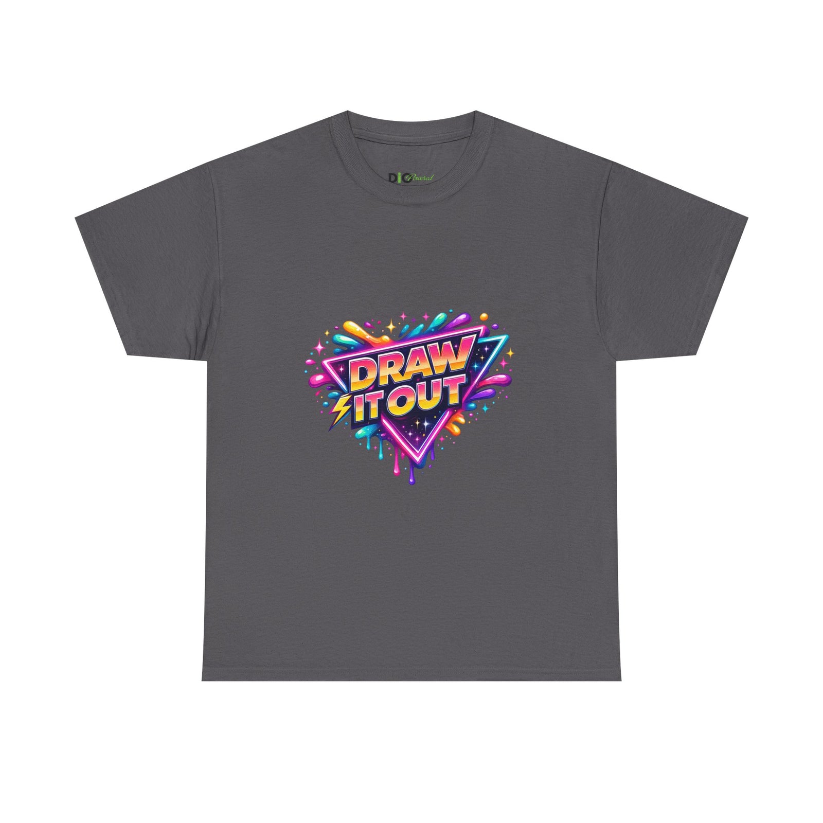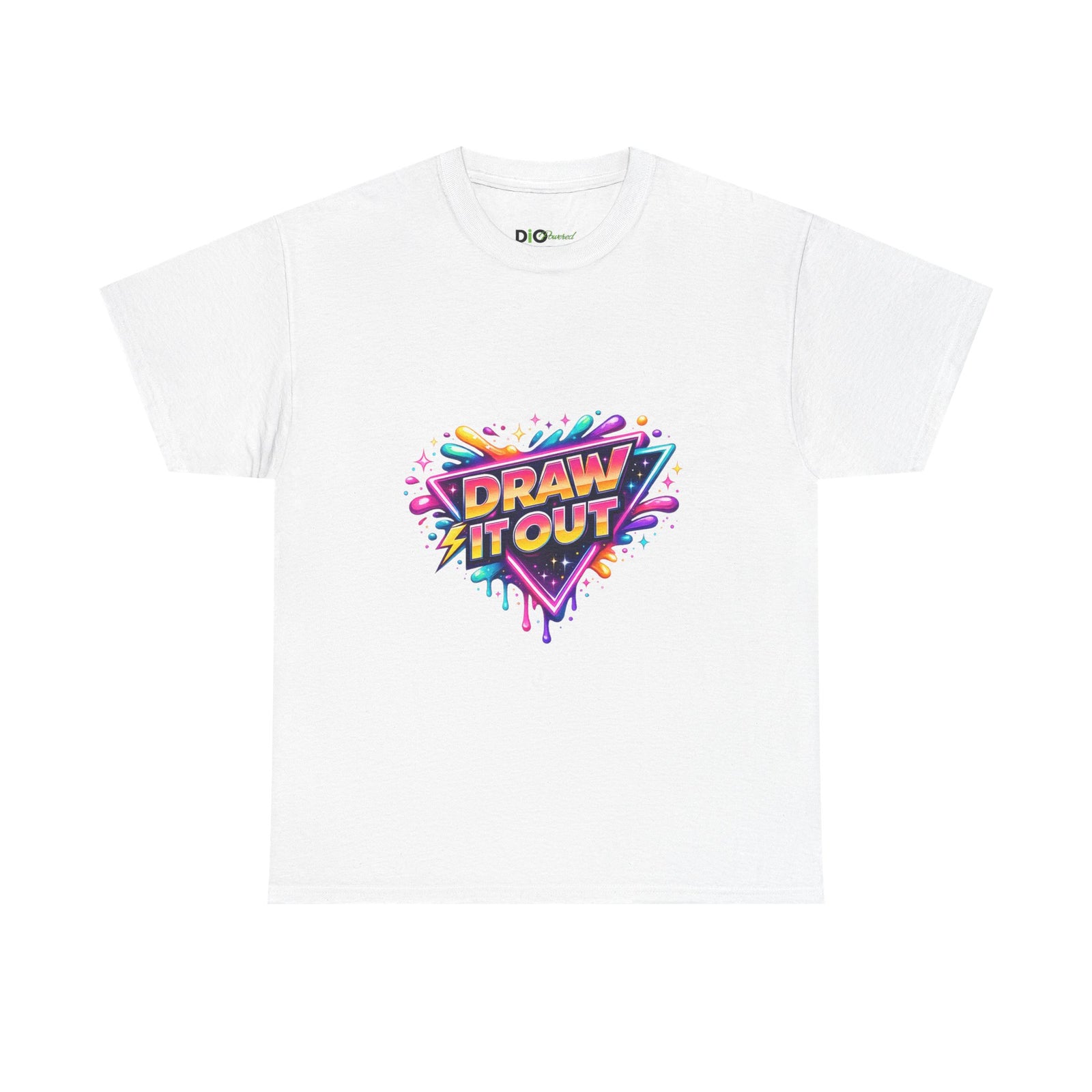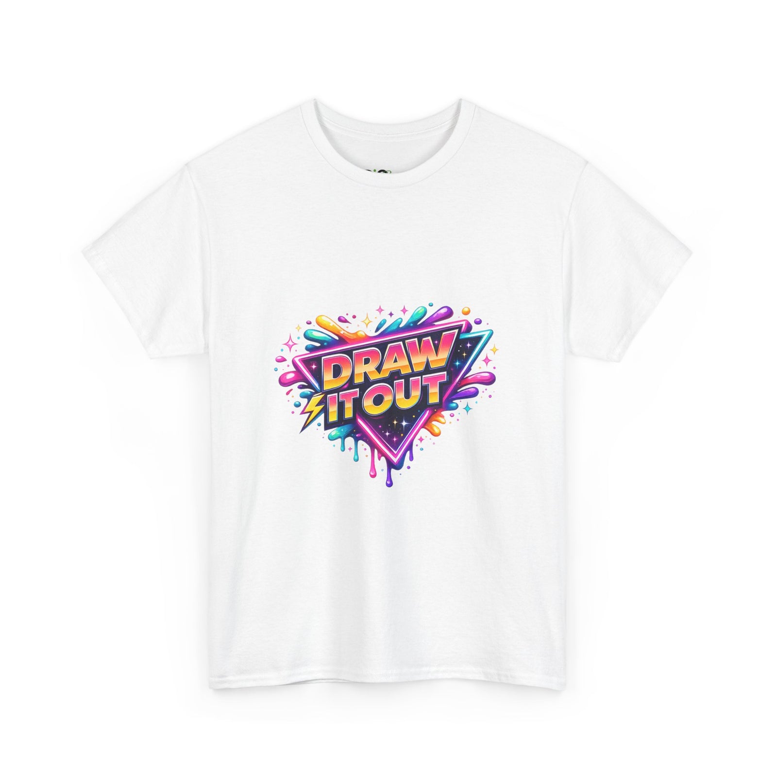 The Draw It Out® Colorburst Graphic Tee is built for creators who like their basics with personality. Inspired by bold, neon-forward art styles, the front graphic pops with saturated color and paint-drip energy, while a subtle branded mark at the upper back keeps the finish clean and intentional.